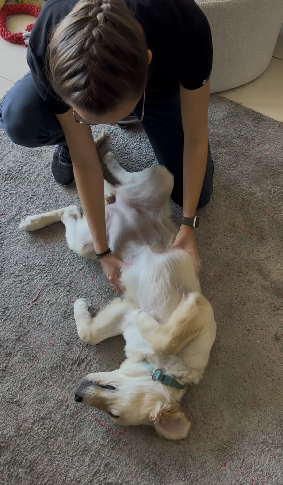 Sensibilité et inconfort : sensibilité au toucher, appréhension du harnais ou du collier, refus de certains mouvements ou activités, changements de comportement.